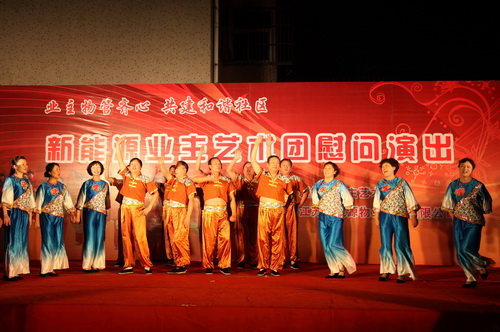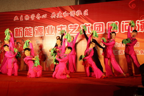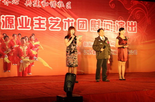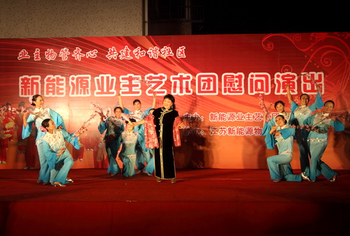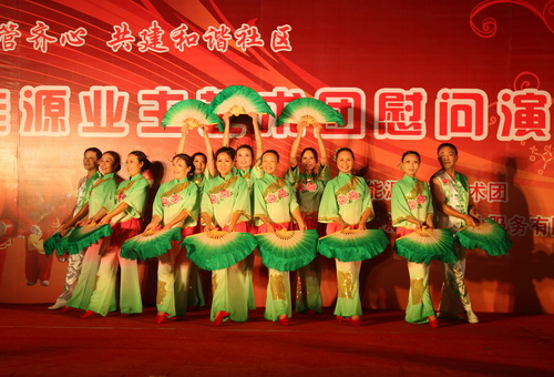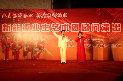 9月29日,由新能源物業(yè)公司主辦,新能源業(yè)主藝術團在蘭苑中心廣場舉辦了一場業(yè)主物管齊心,共建和諧社區(qū);慰問演出。整場晚會持續(xù)了一個半小時,收到了良好的效果。